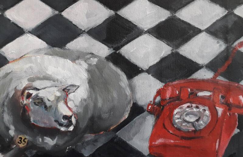Verdwaald schaap met de rode telefoon