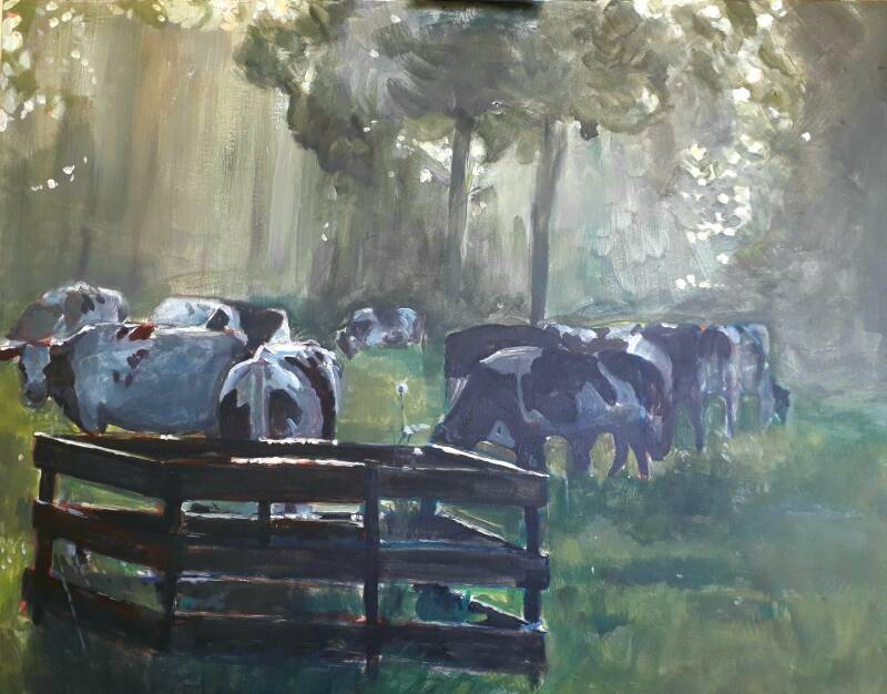 Koeien oase (zie 2021 voor de tweede versie in olieverf)